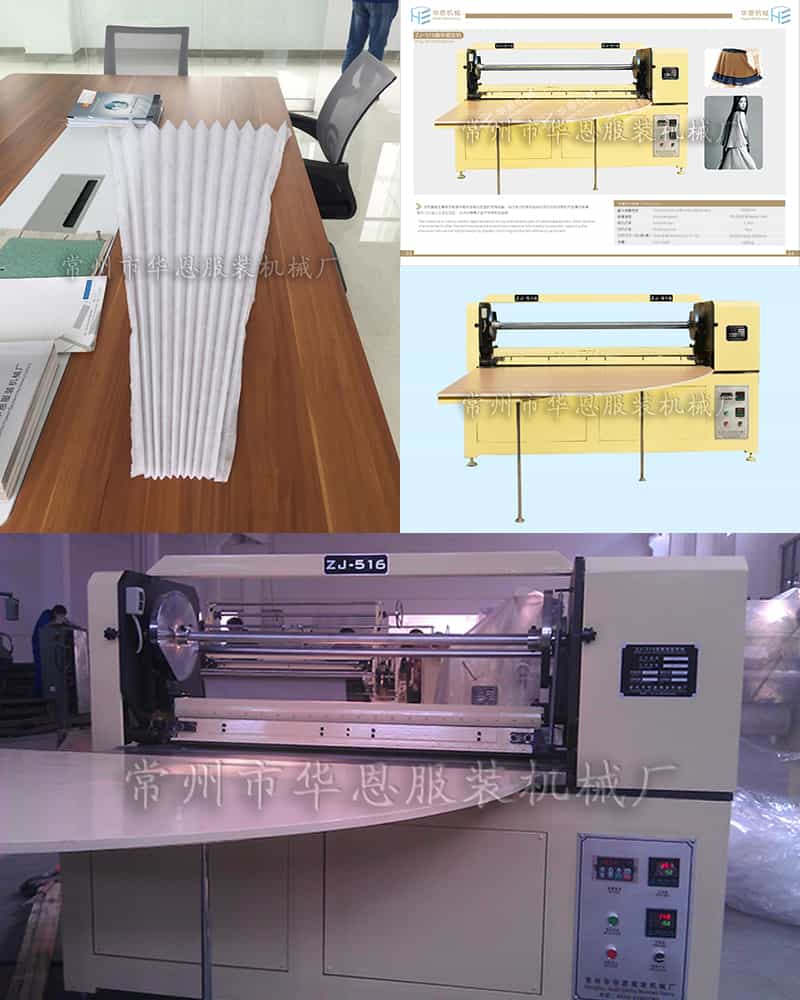 該機器是主要用于服裝中扇形壓褶及定型的專用設備。經過多次改良試驗后已成為比較成熟的產品操作簡便,取代了以往人工手工加工,大大的提高了生產效率和成品率。